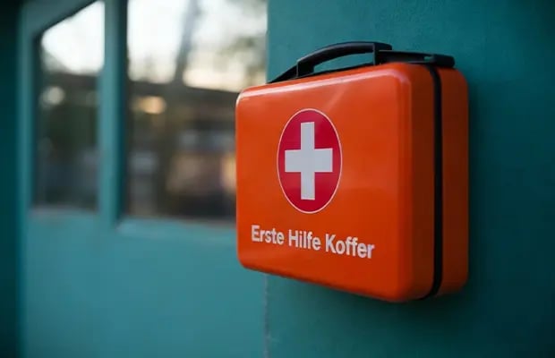 Bewahre die Koffer so auf, dass sie vor Feuchtigkeit, Schmutz und starken Temperaturschwankungen geschützt sind. Die Verbandskästen dürfen außerdem nicht in irgendeinem Spind versauern, sondern müssen sicht- und greifbar aufbewahrt werden. Bei einem Notfall ist schnelle Hilfe entscheidend! Sicht- und greifbar heißt in diesem Fall: Gibt es bei dir ständige Arbeitsplätze, sollte um jeden dieser Plätze in einem Radius von 100 Metern ein Koffer verfügbar sein.